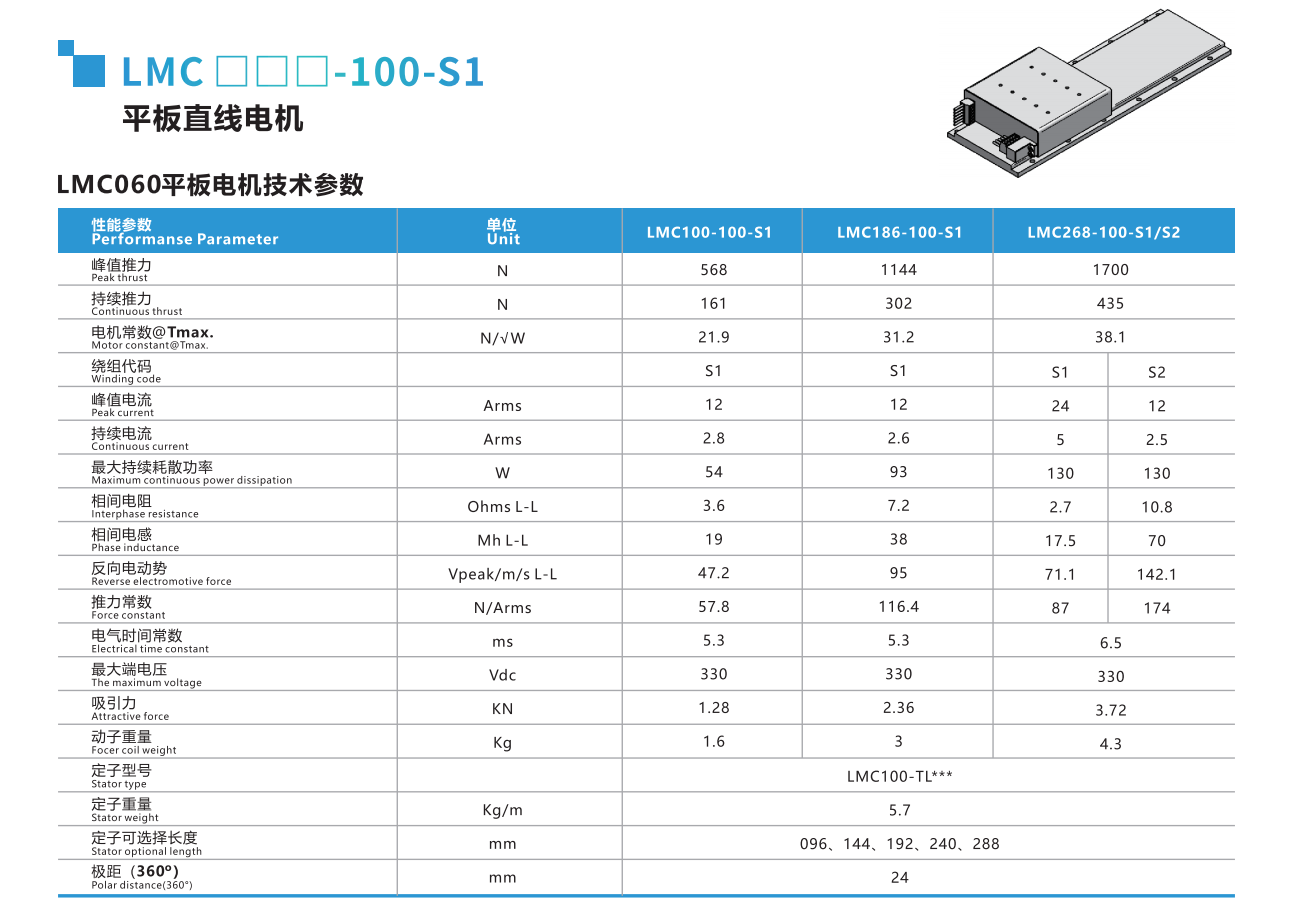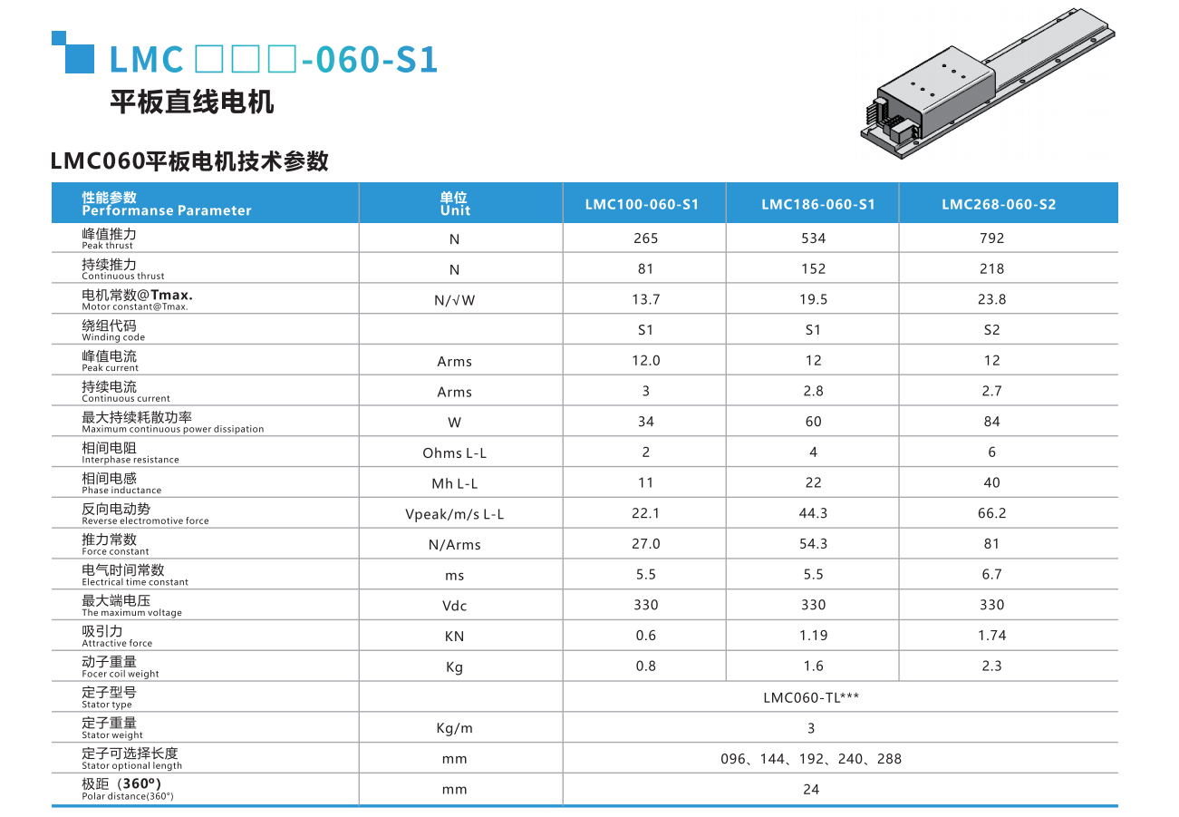 LMC有鐵芯電機采用了極佳的抗齒槽效應的解決方案,盡最大限度降低齒槽效應,這一切都無需偏斜磁鐵。它們外型小巧、低吸力,適合替代很多無鐵芯應用,電機產生的高推力使其成為加速和移動高質量以及加工過程中保持剛度的理想選擇。