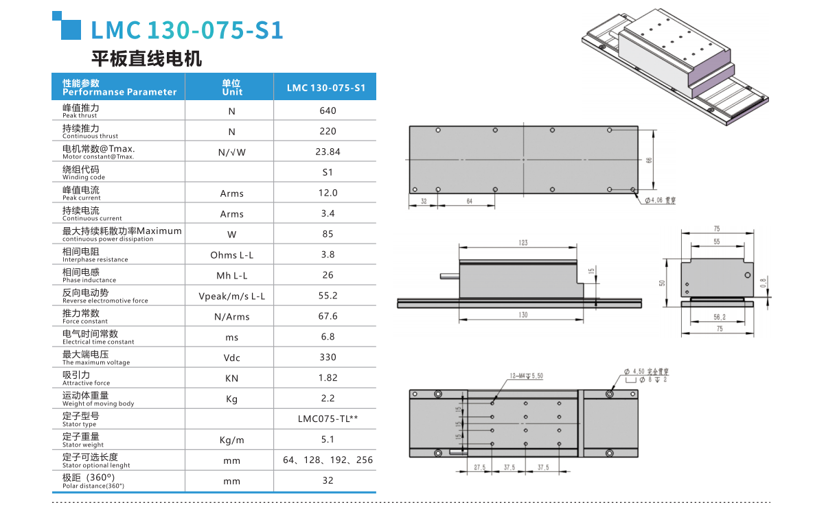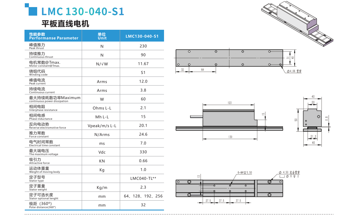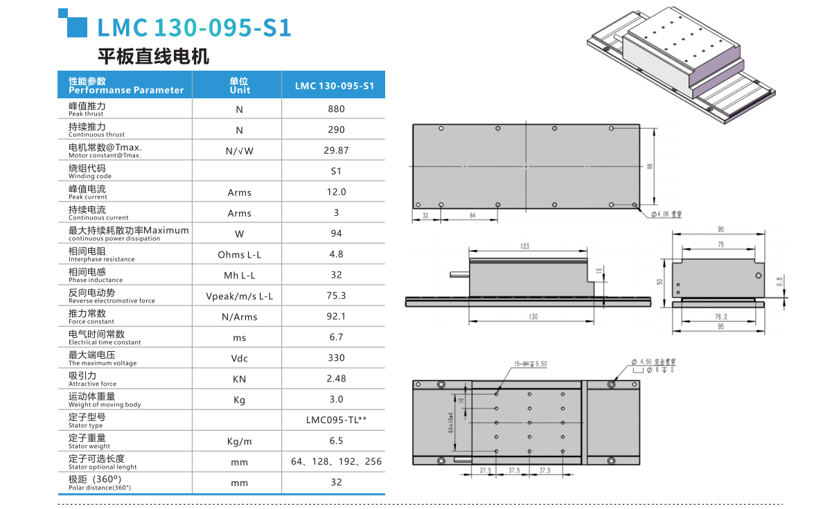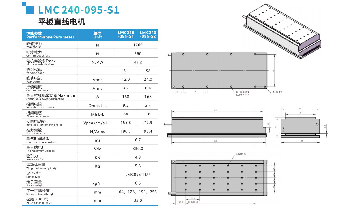 LMC有鐵芯電機采用了極佳的抗齒槽效應的解決方案,盡最大限度降低齒槽效應,這一切都無需偏斜磁鐵。它們外型小巧、低吸力,適合替代很多無鐵芯應用,電機產生的高推力使其成為加速和移動高質量以及加工過程中保持剛度的理想選擇。