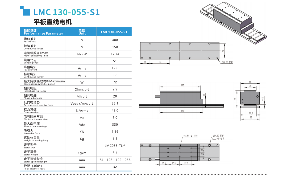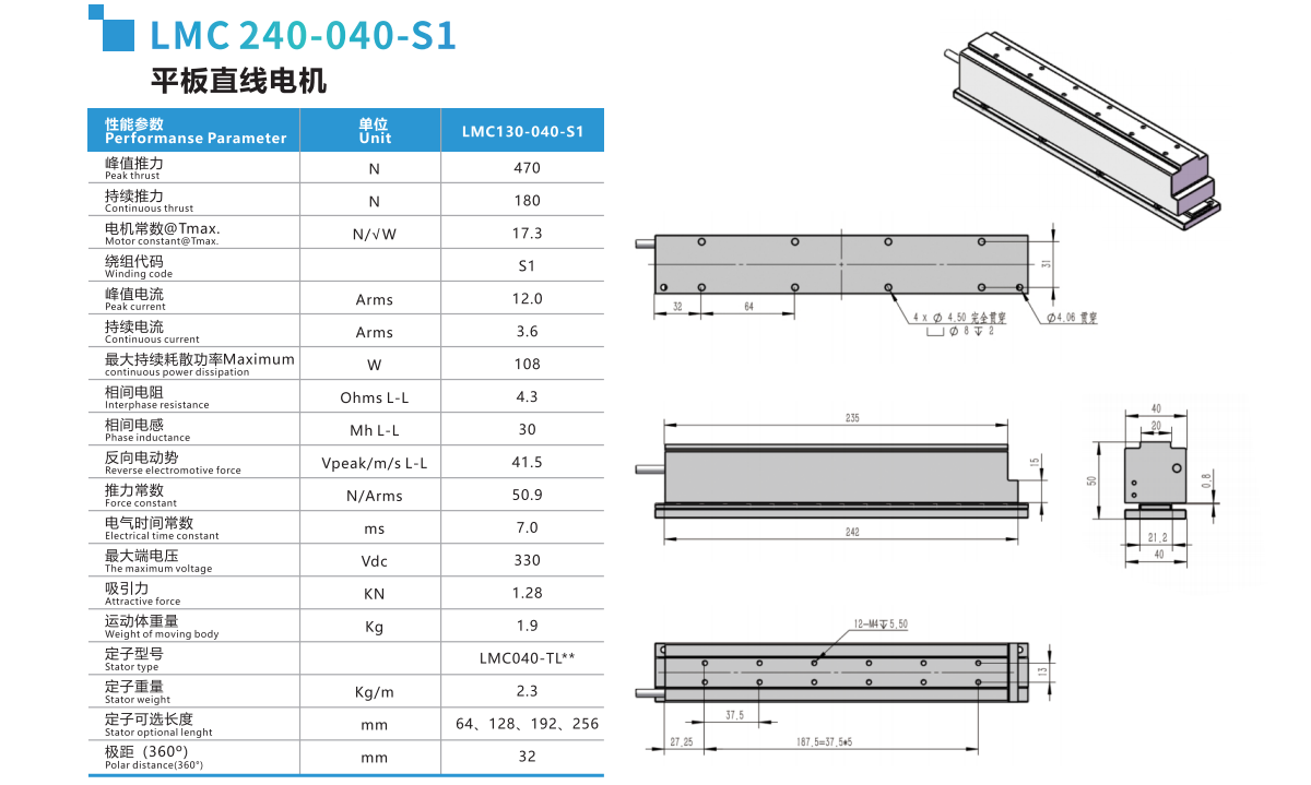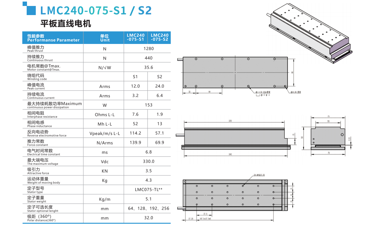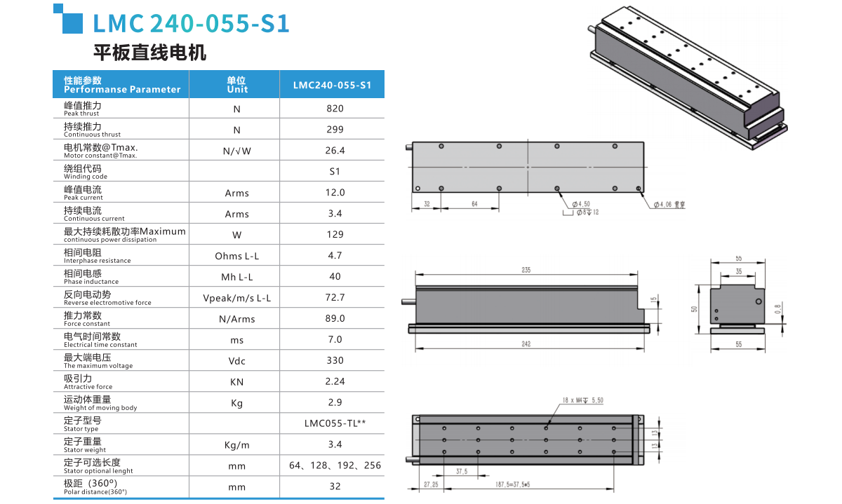 LMC有鐵芯電機采用了極佳的抗齒槽效應的解決方案,盡最大限度降低齒槽效應,這一切都無需偏斜磁鐵。它們外型小巧、低吸力,適合替代很多無鐵芯應用,電機產生的高推力使其成為加速和移動高質量以及加工過程中保持剛度的理想選擇。